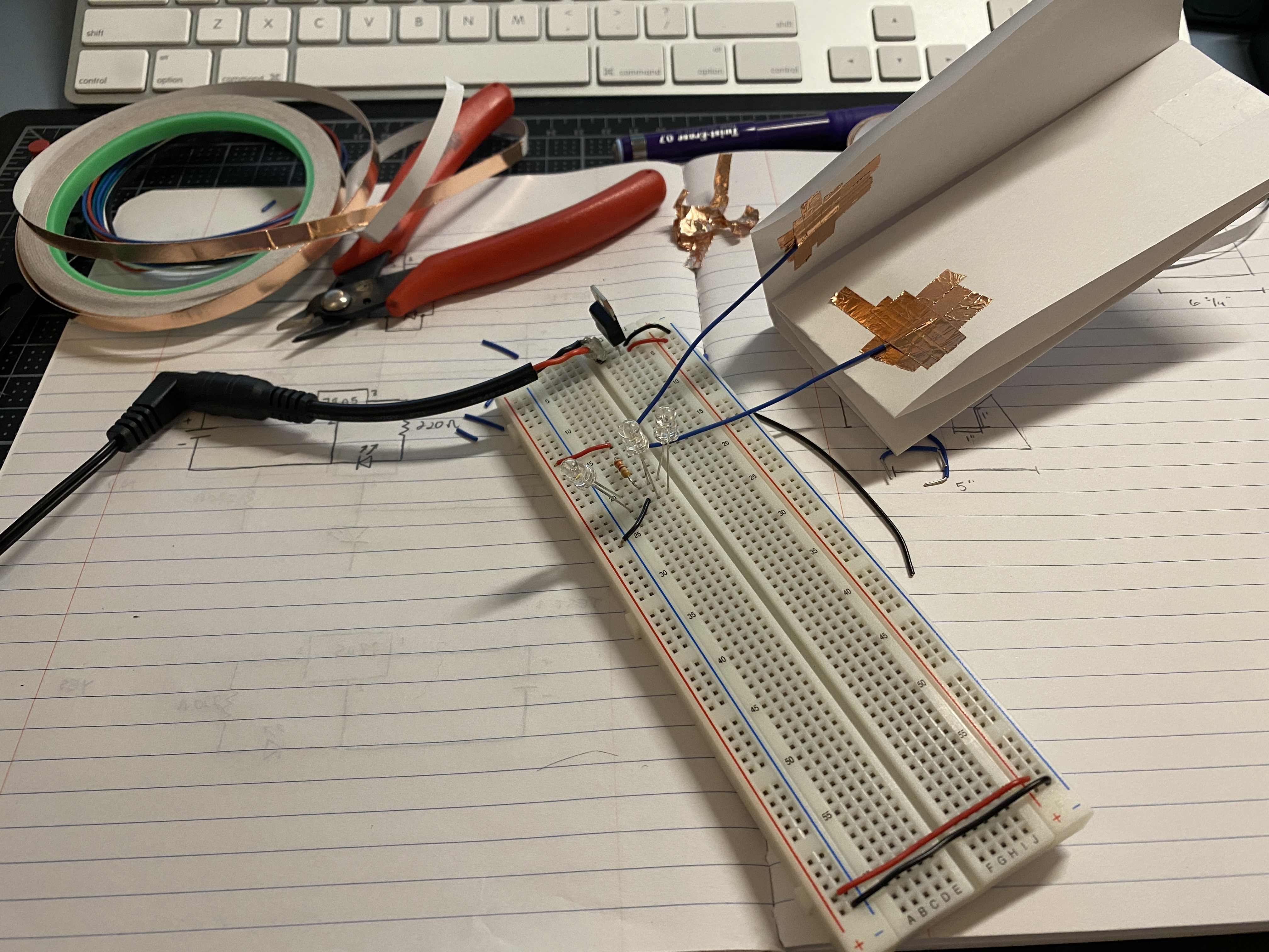 paper with some copper tape to make a switch that would activate the light