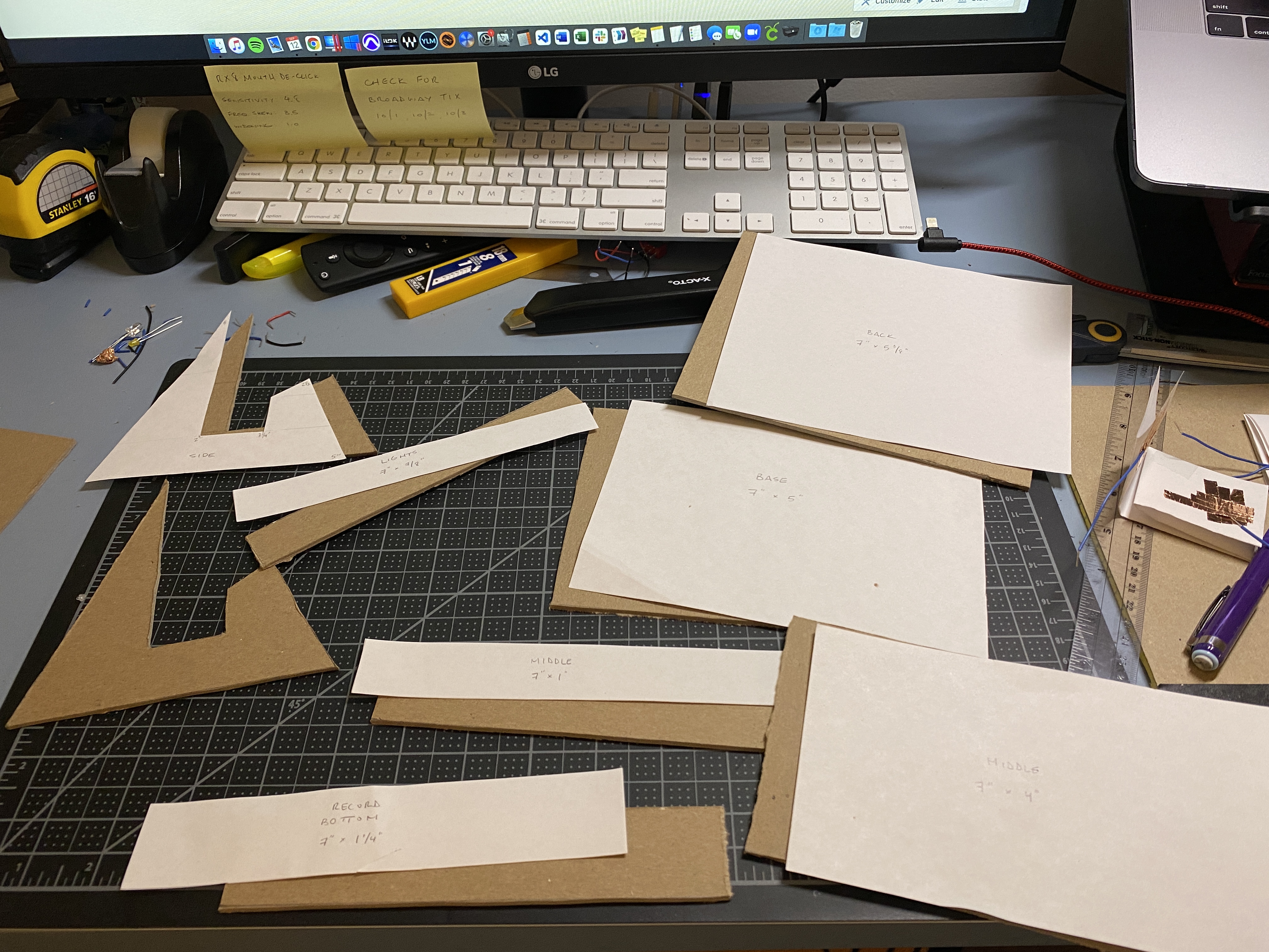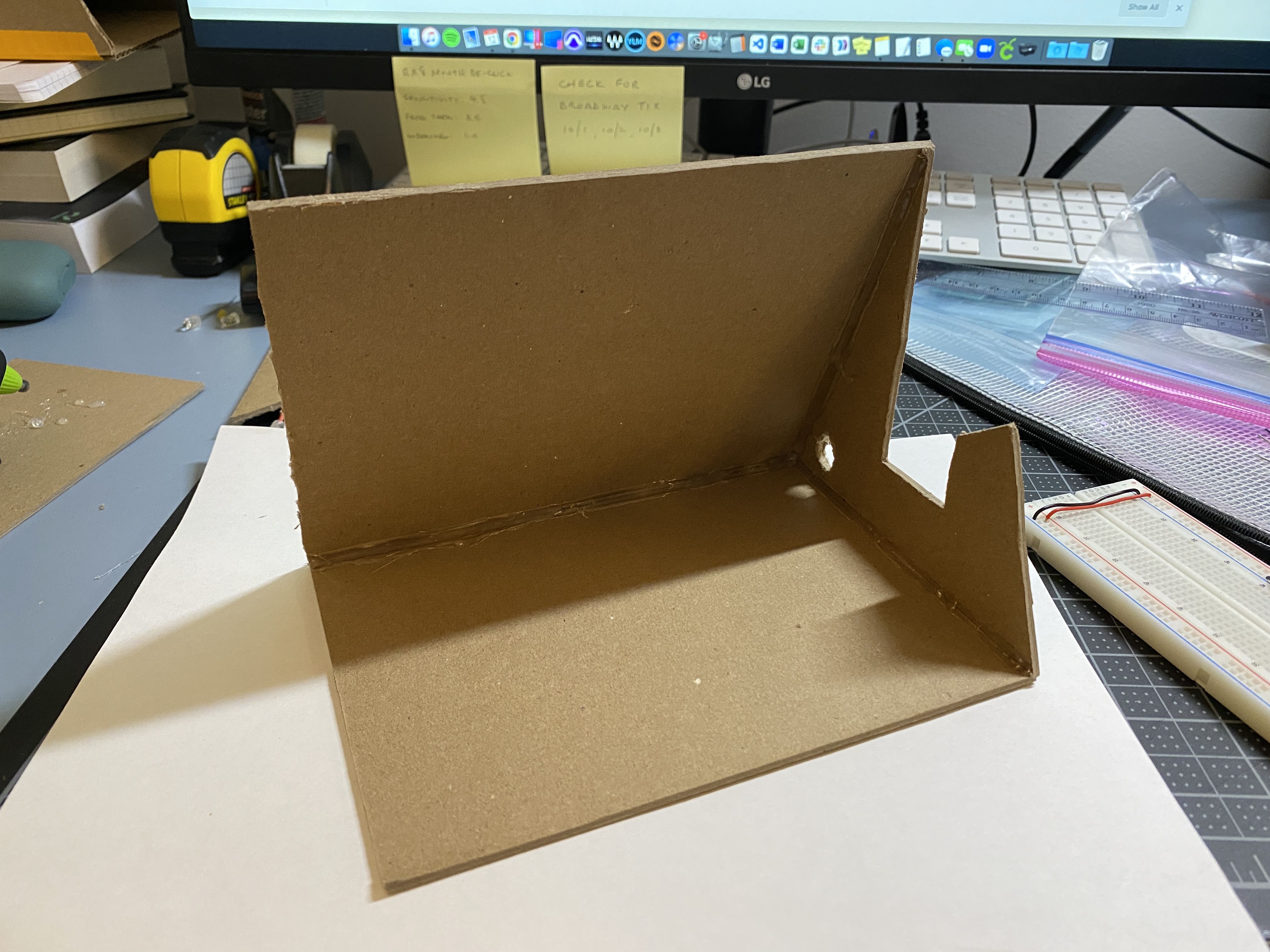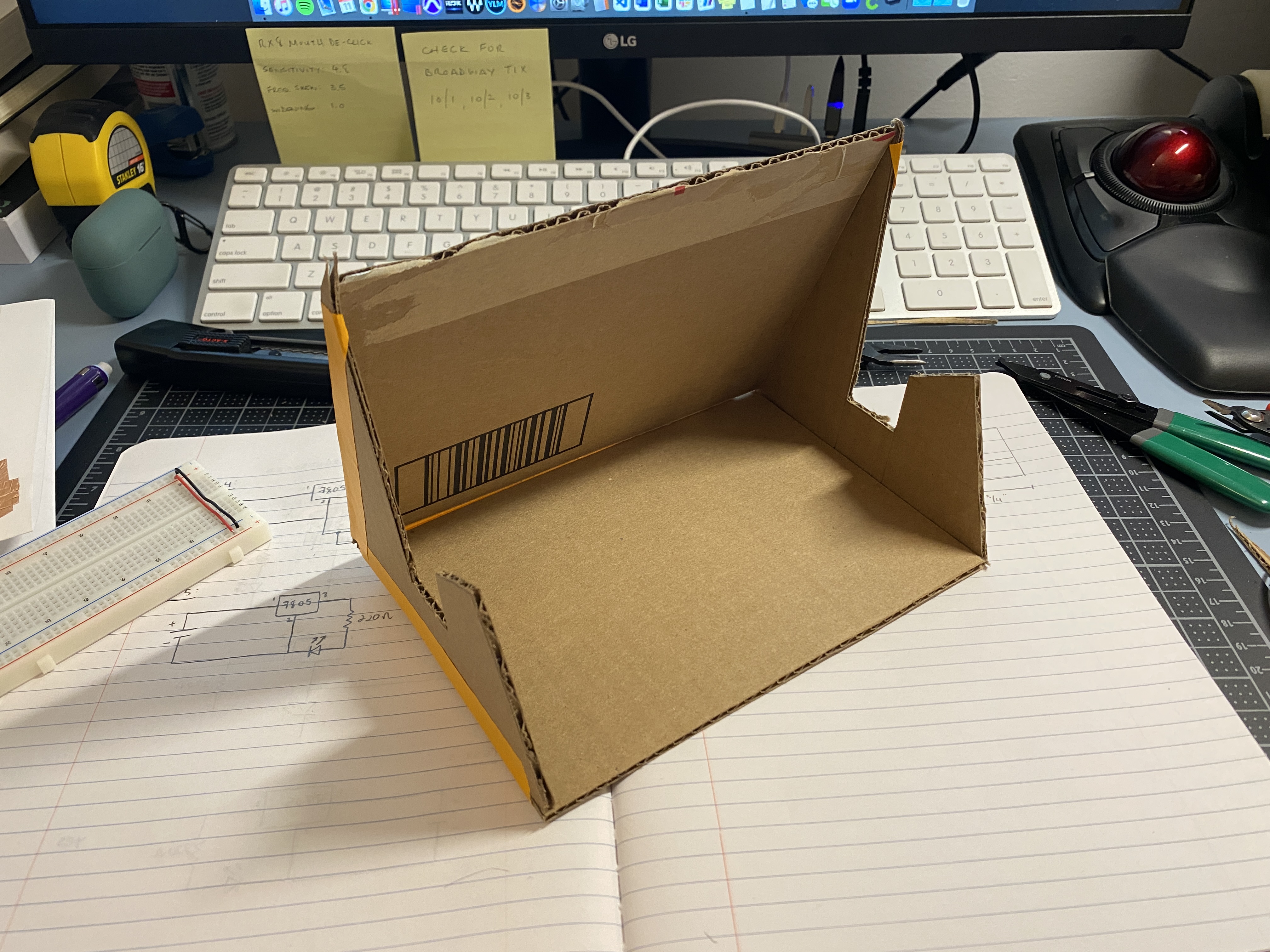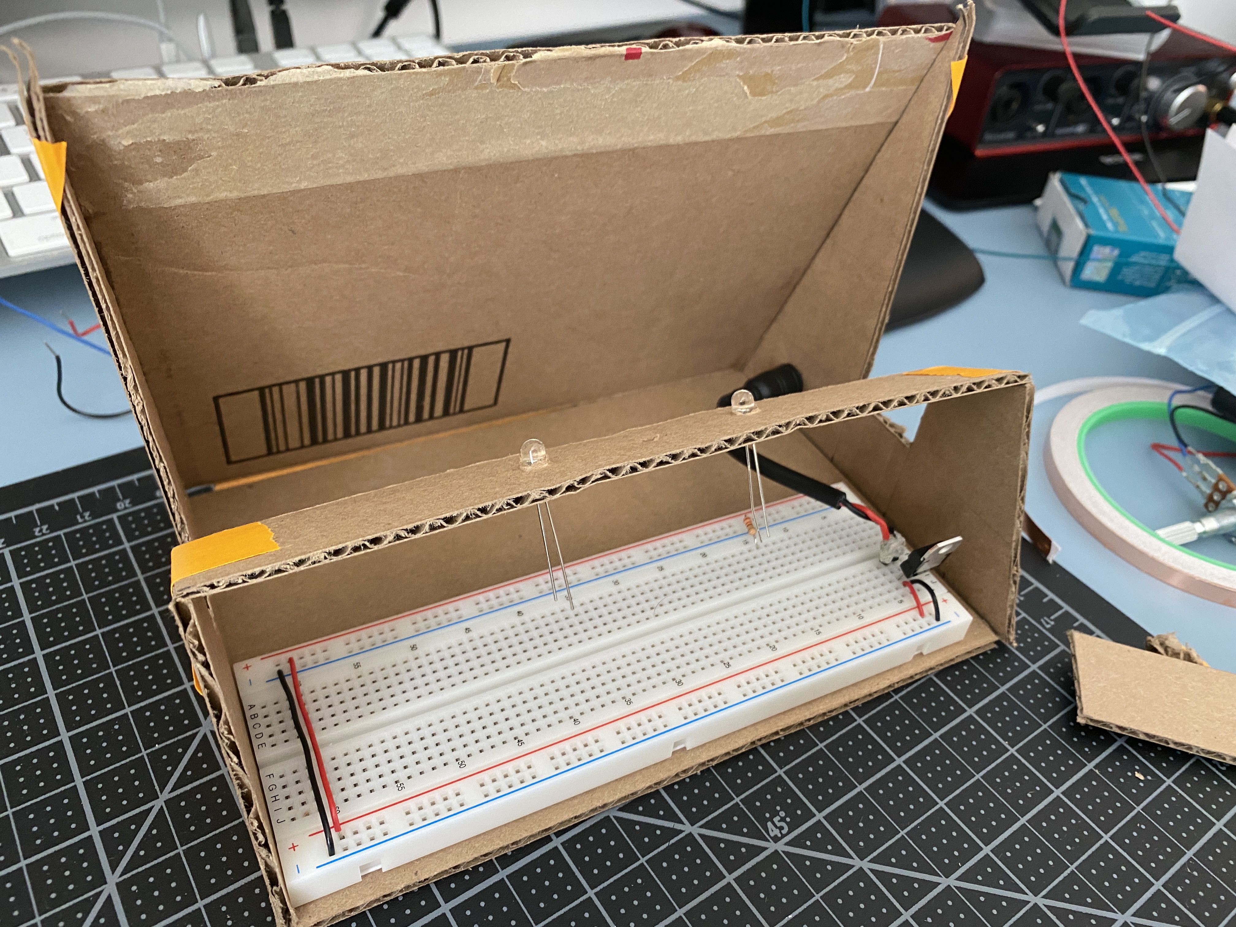 Below I started shaping out a prototype enclosure with cardboard and tape. I