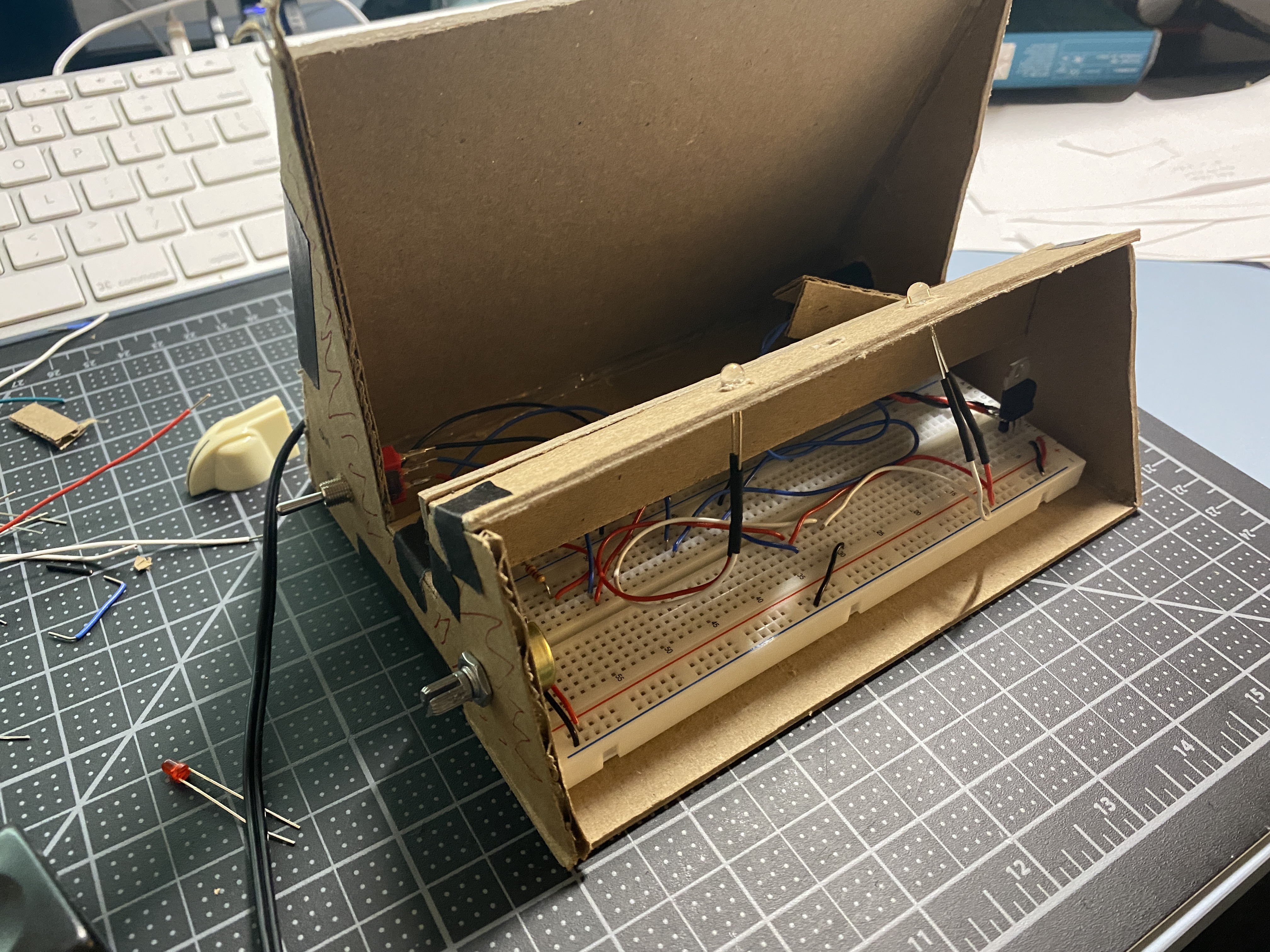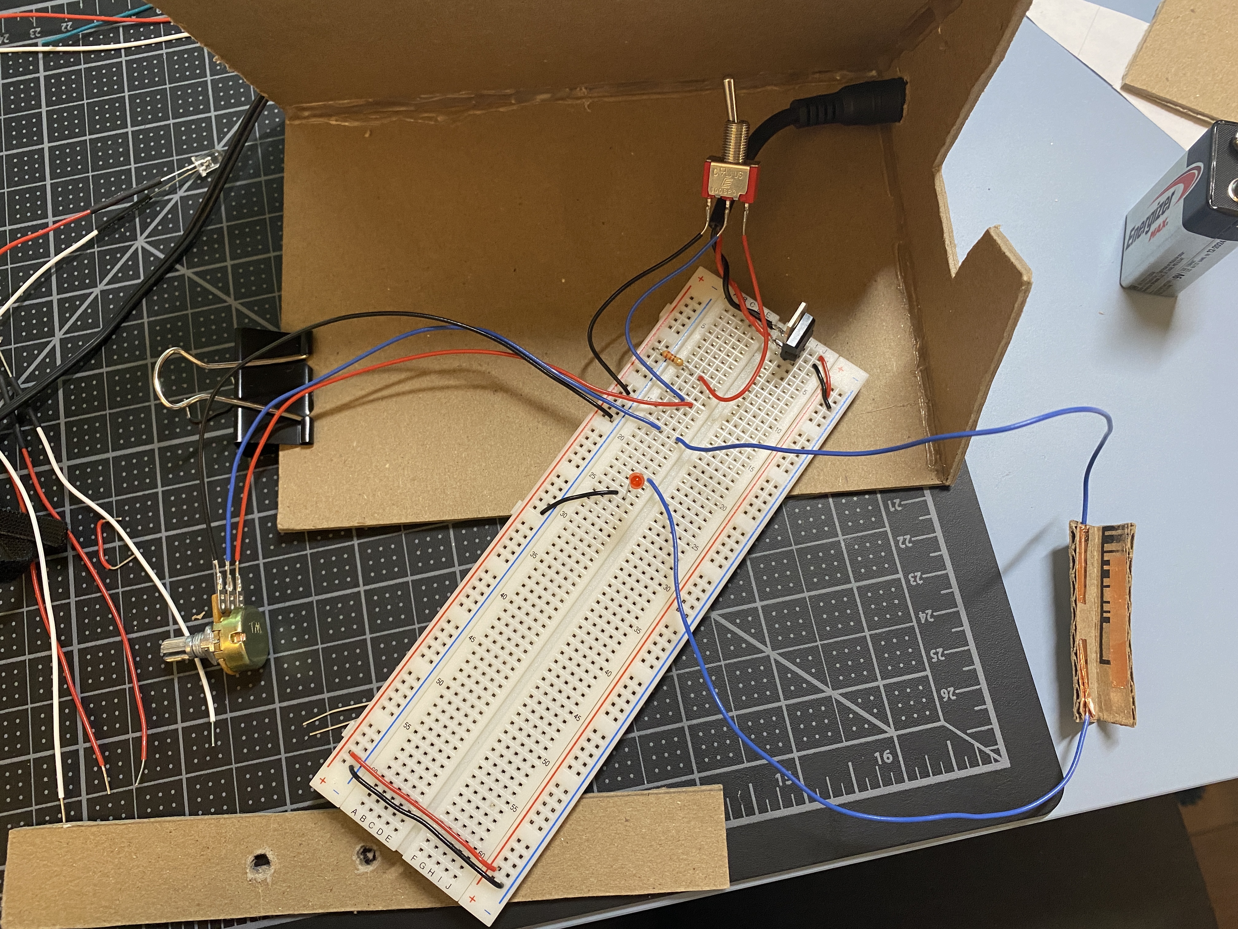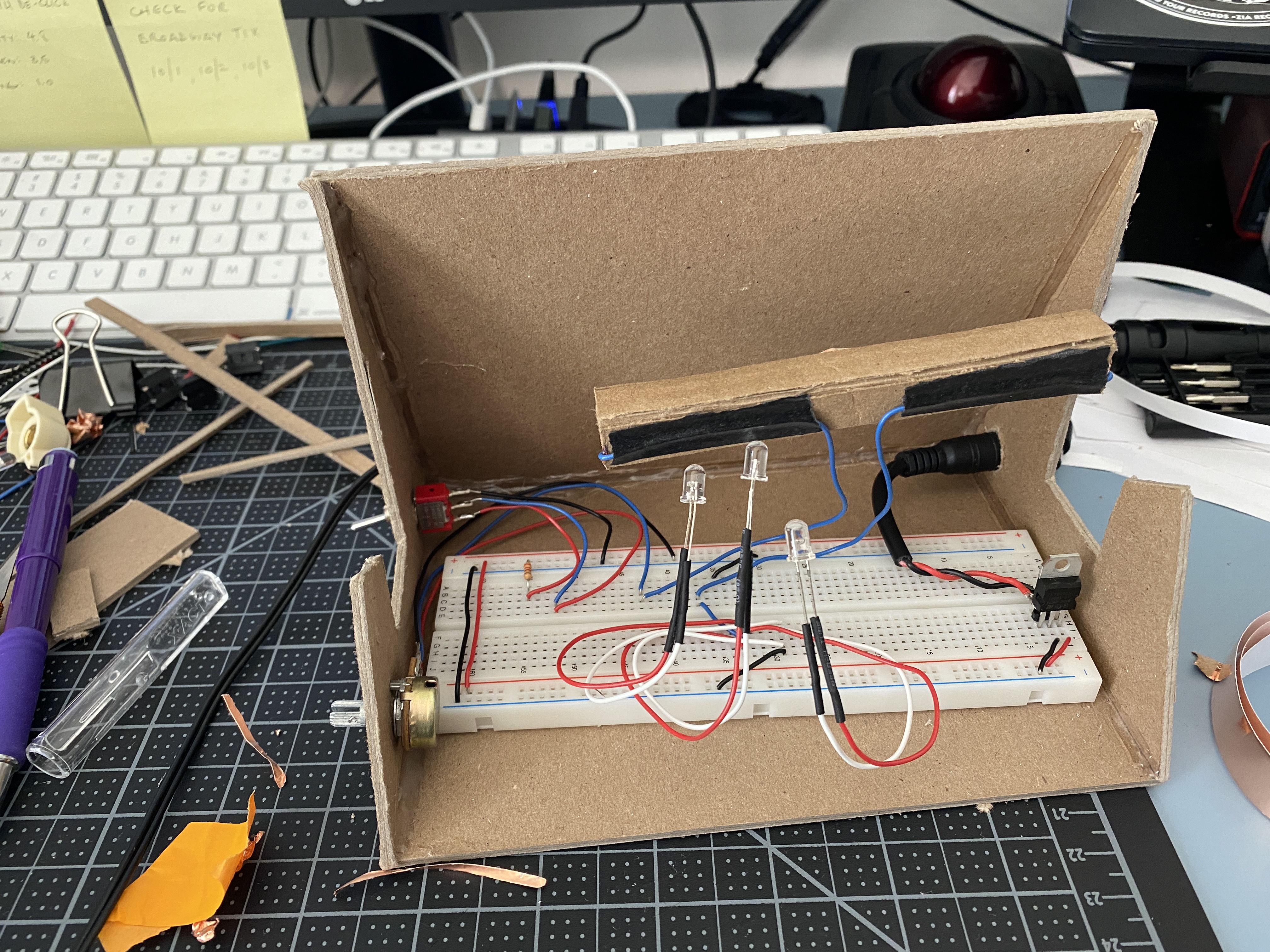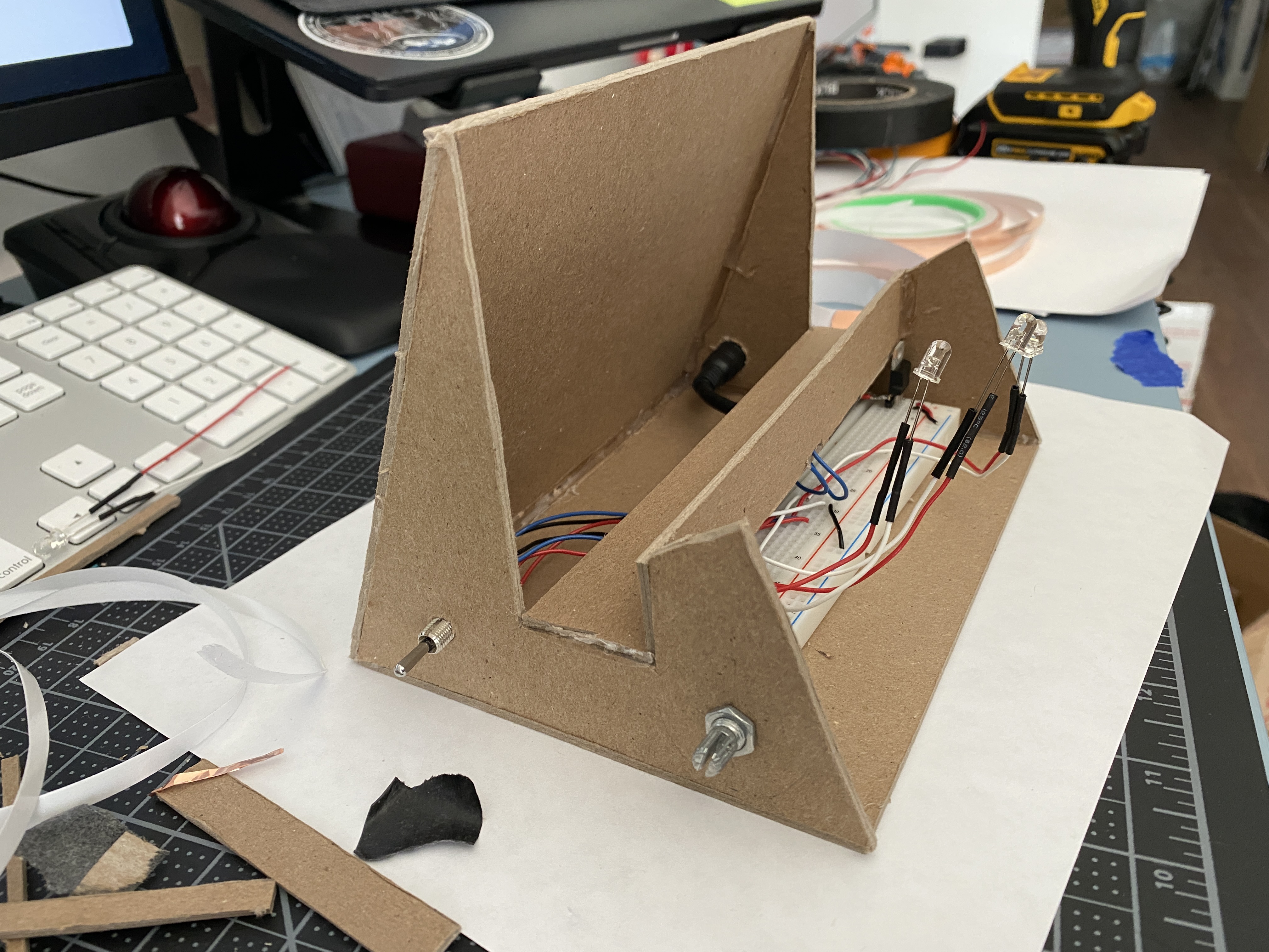 partially used bits of my cardboard prototype to make wiring adjustments