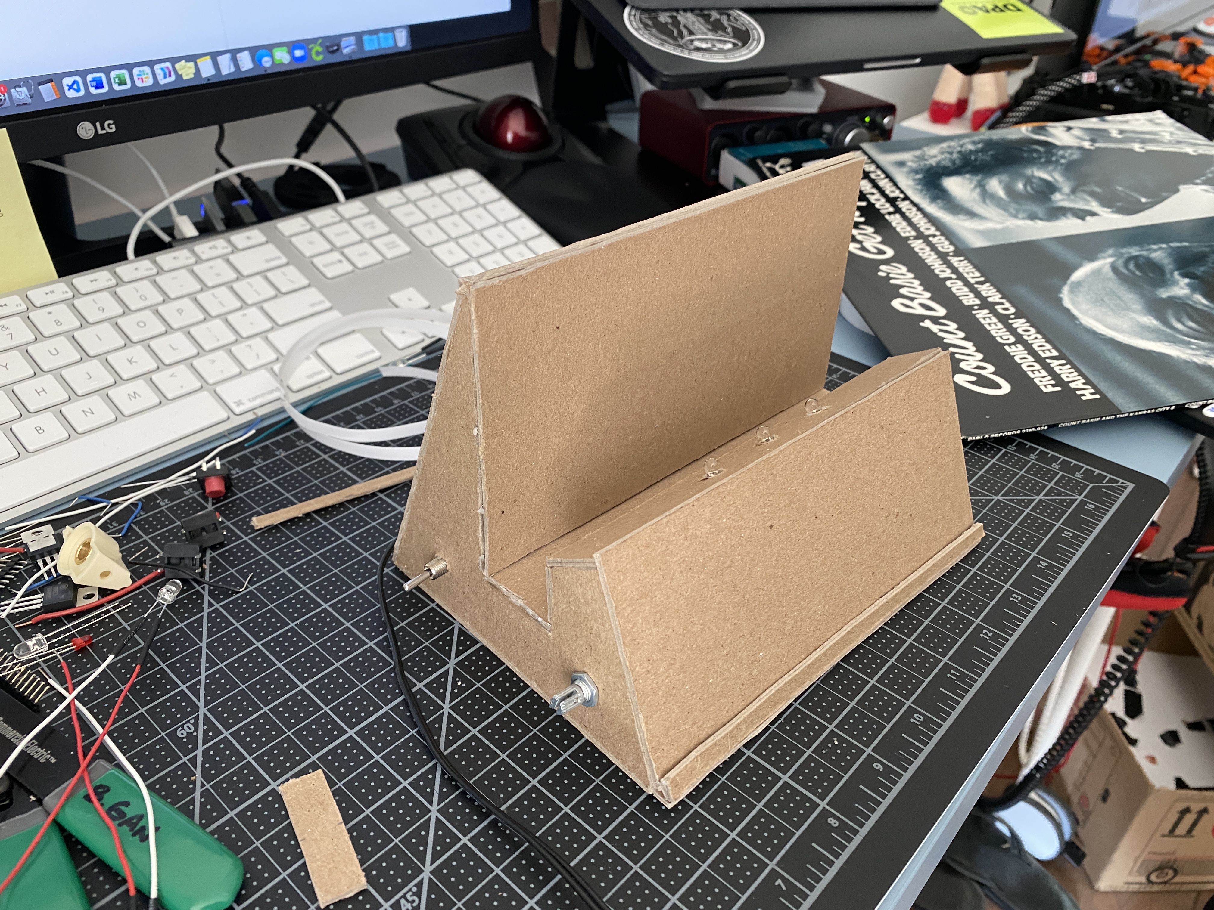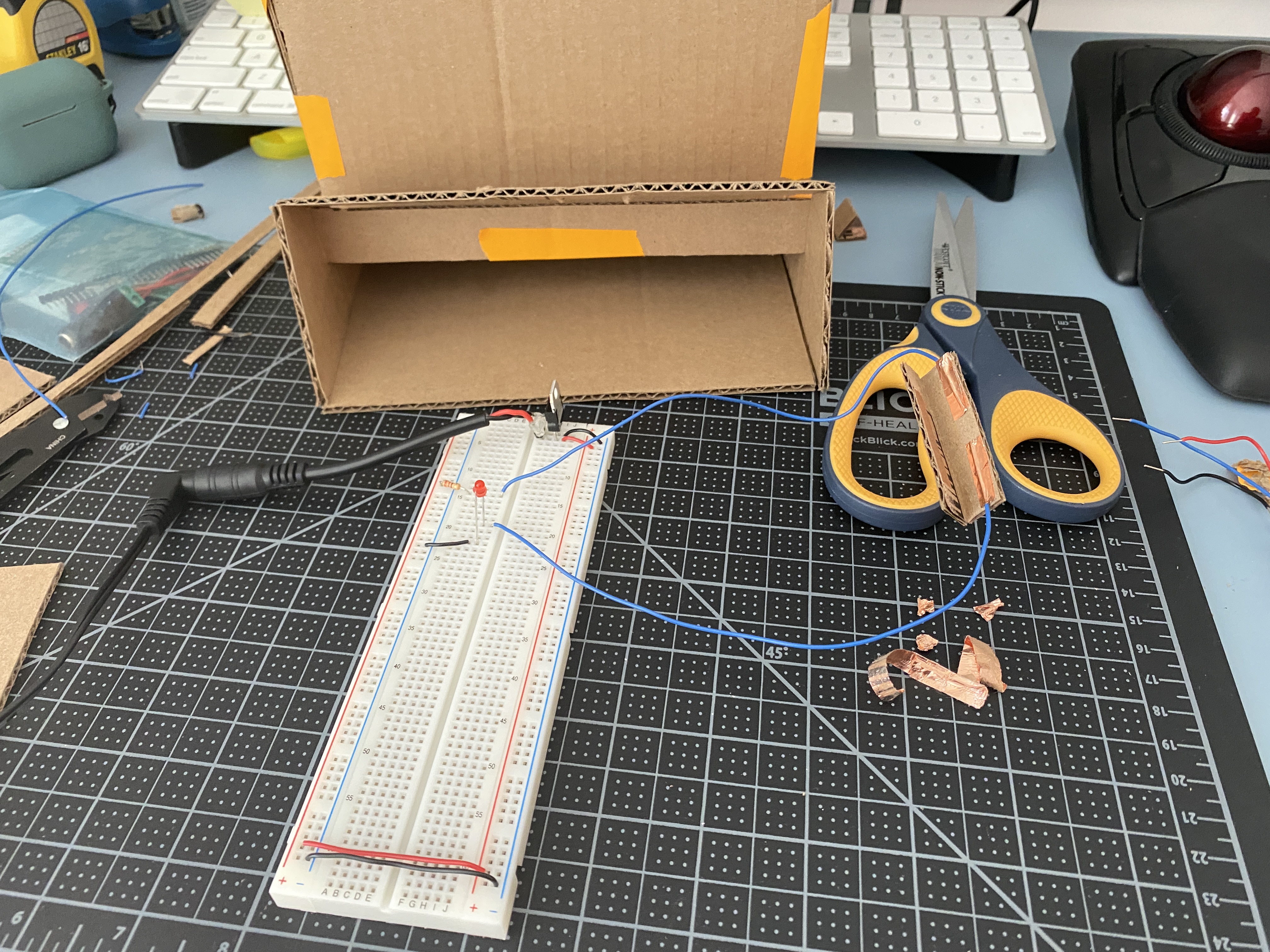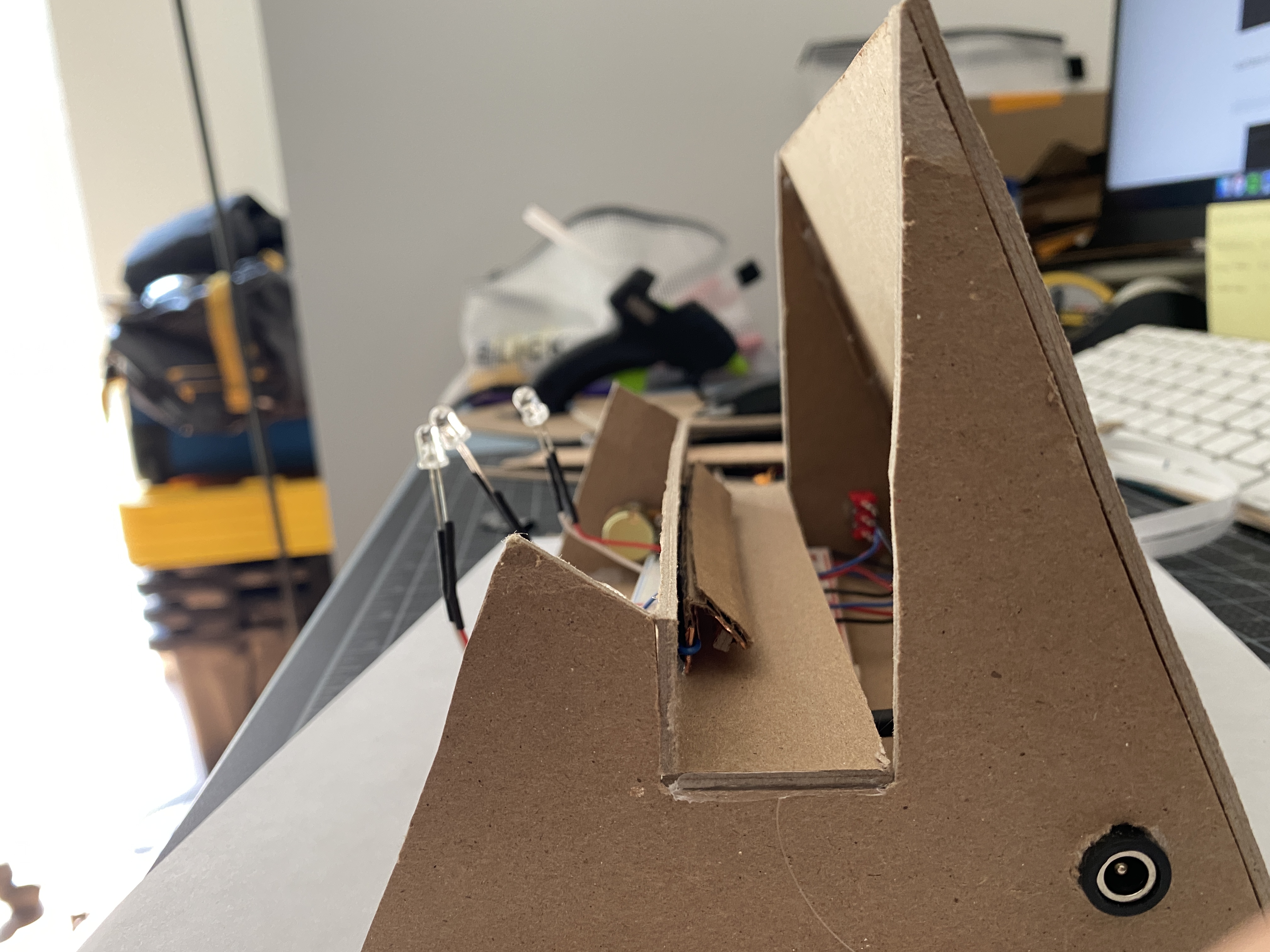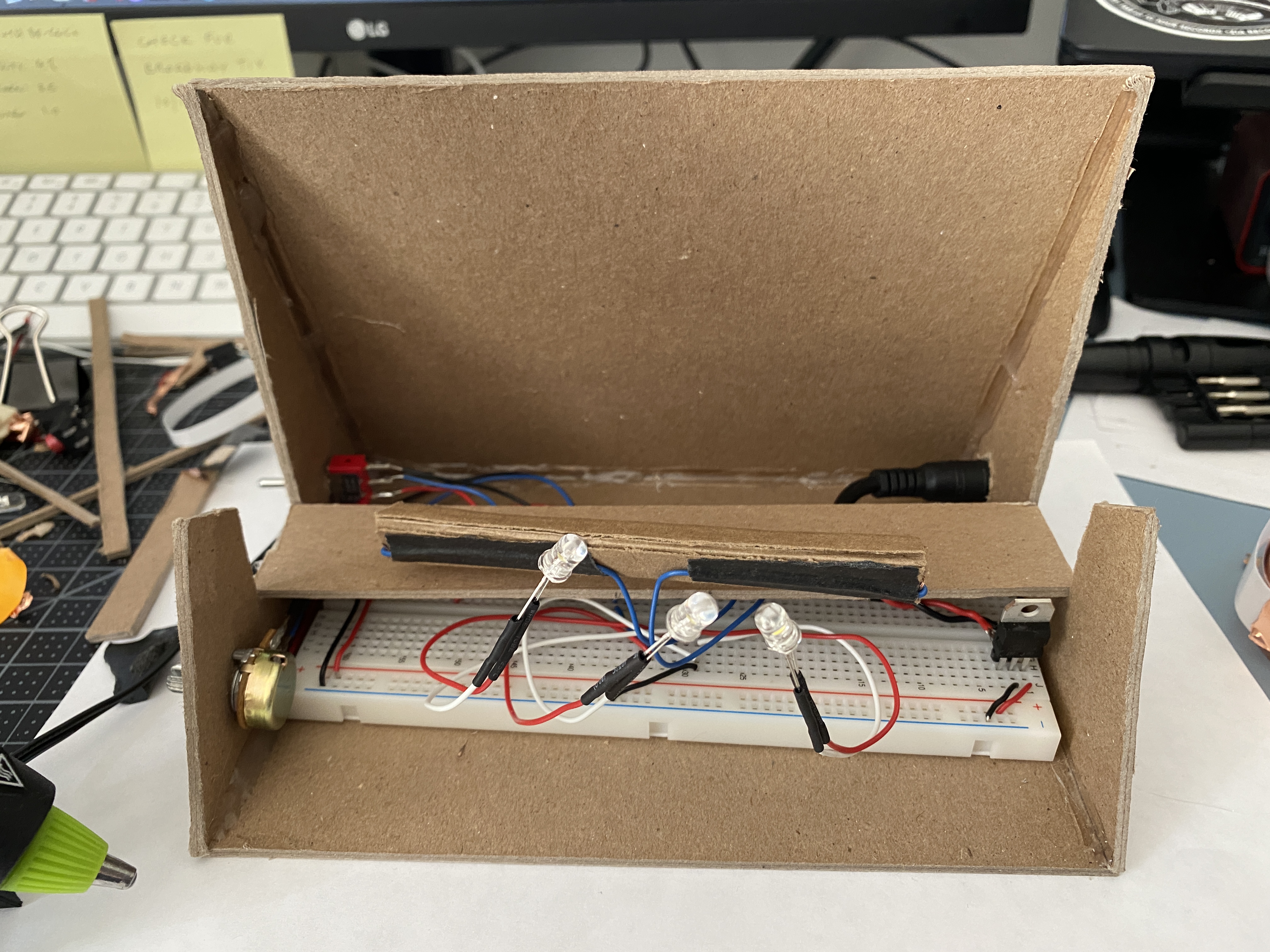 partially used bits of my cardboard prototype to make wiring adjustments
