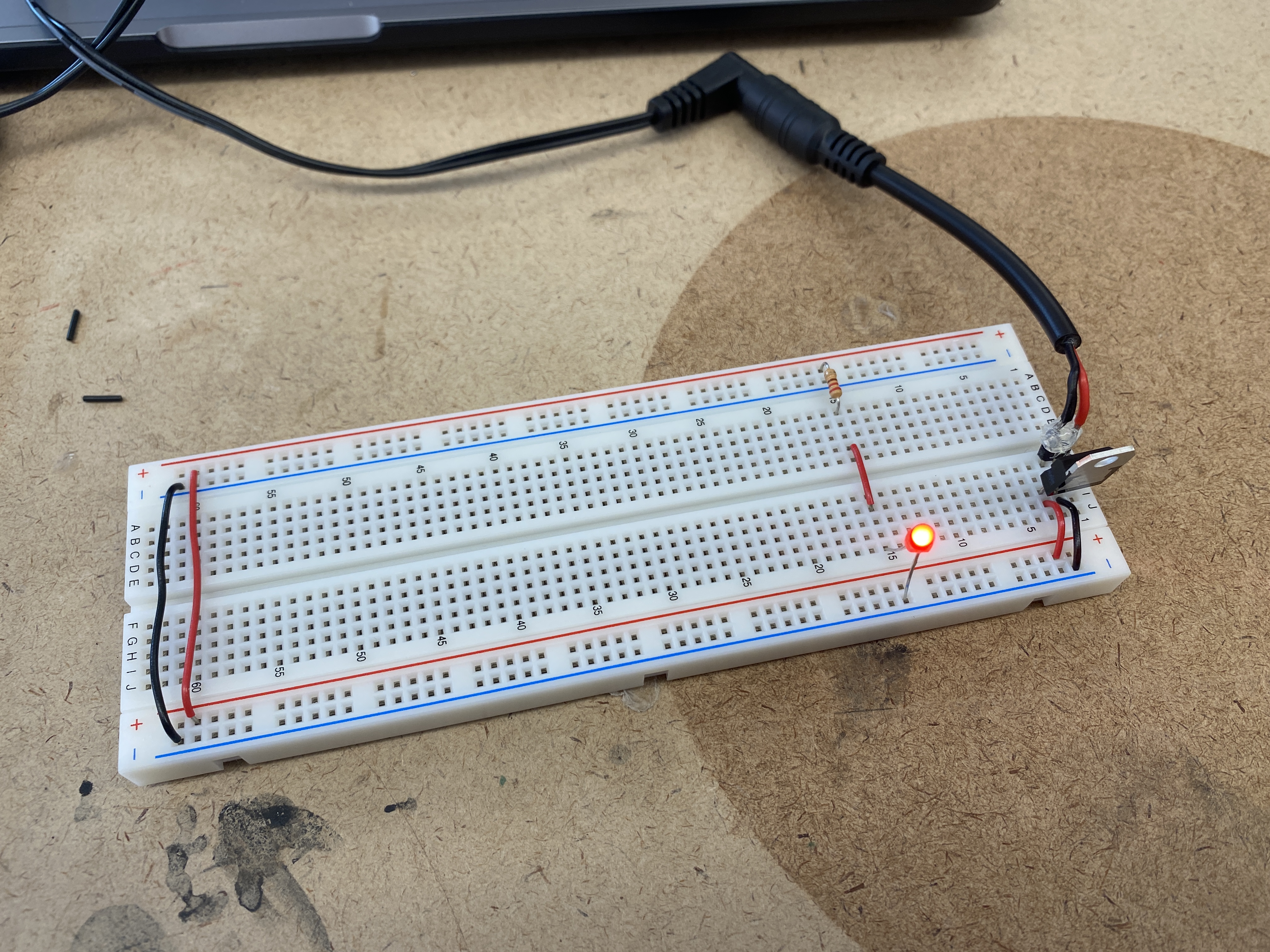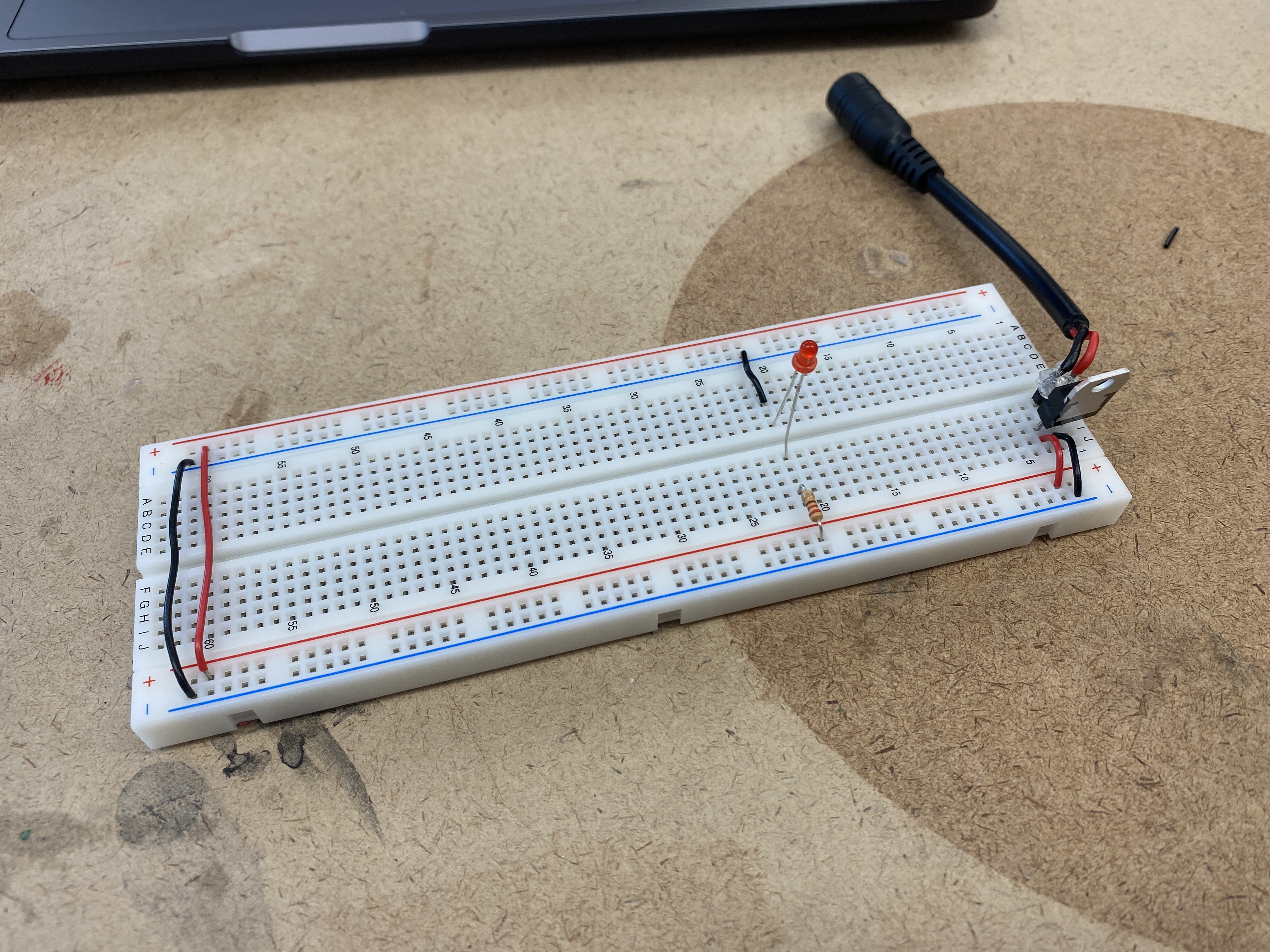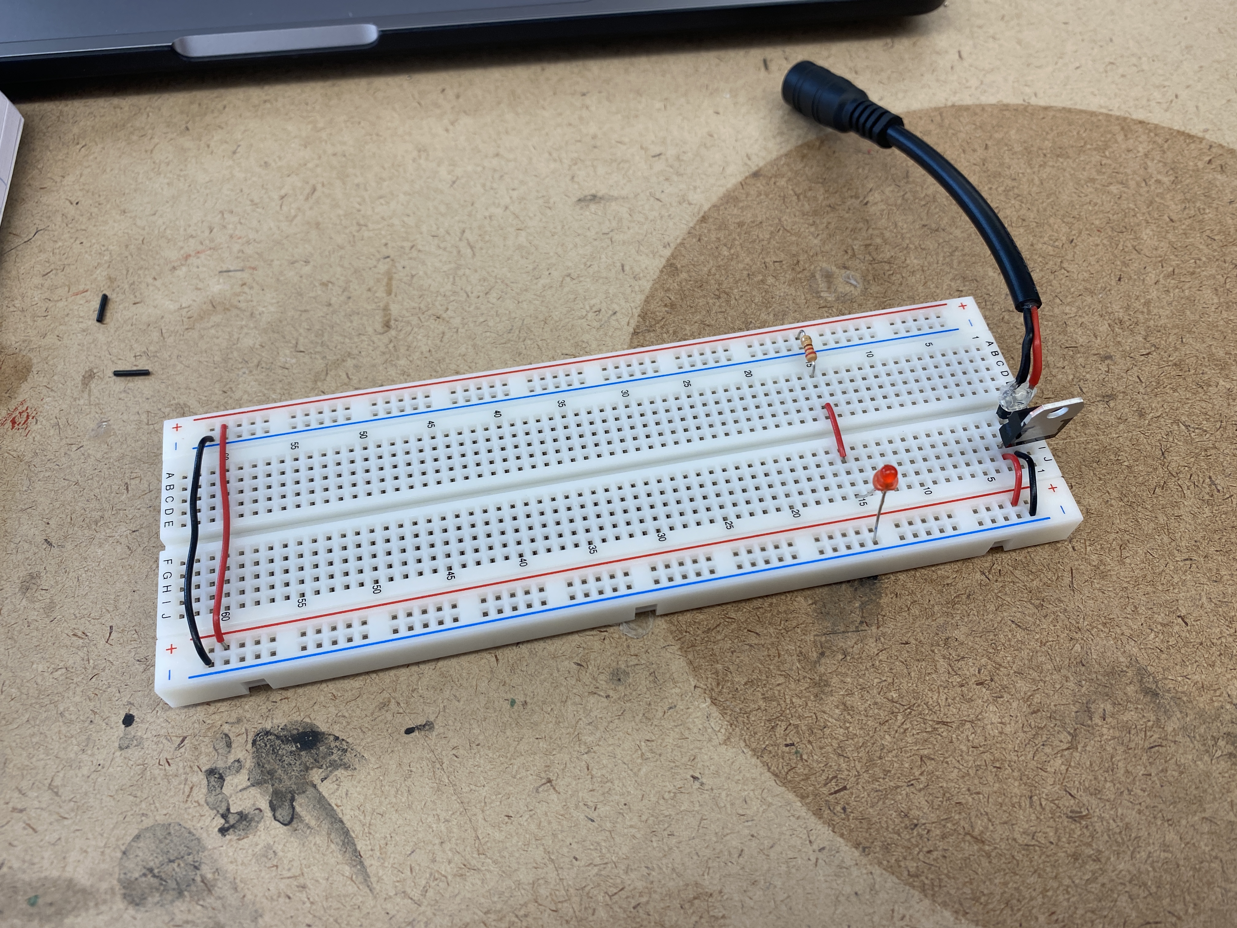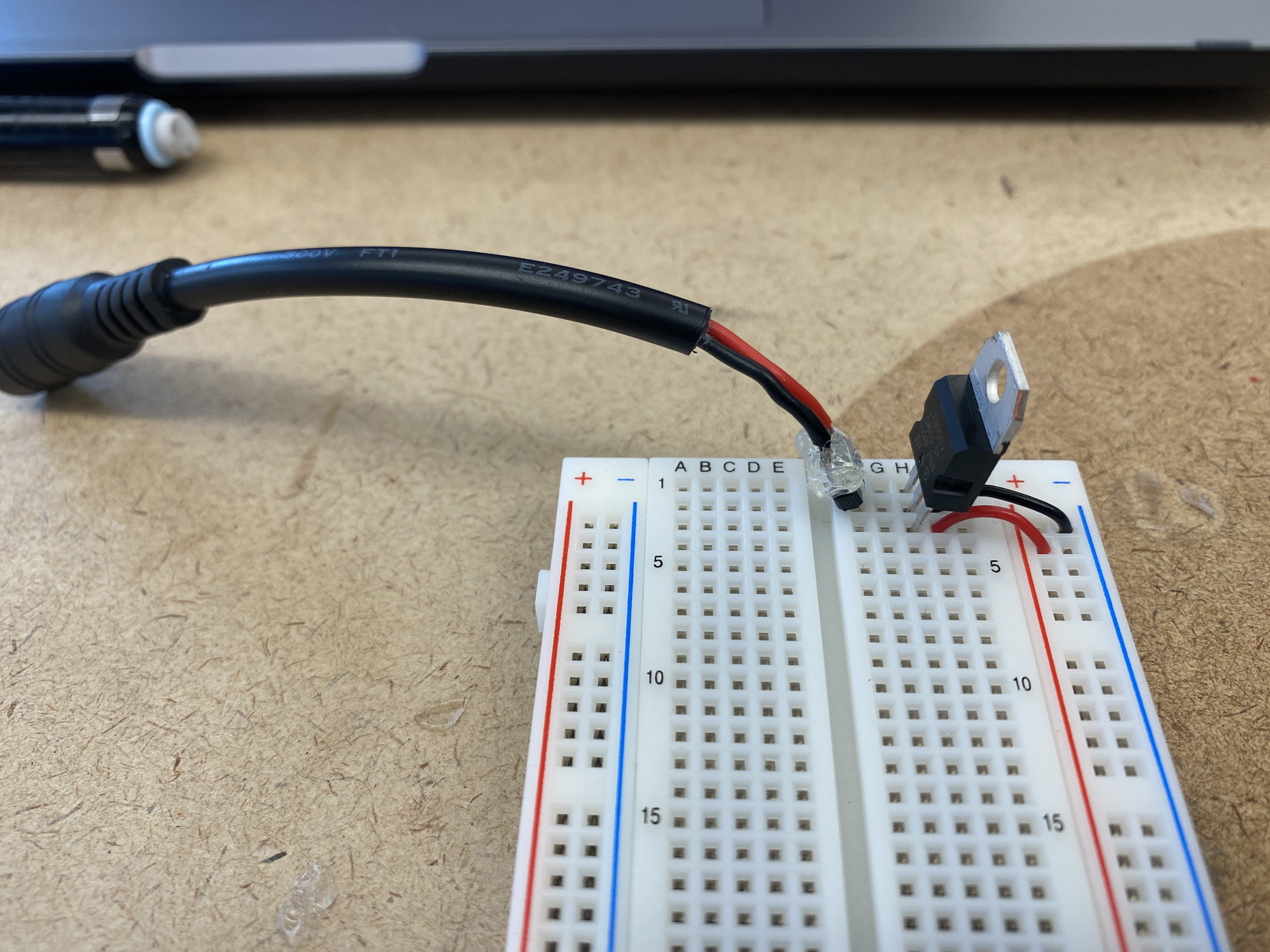 In order to power the breadboard via the microcontroller without a USB, I connected a DC power jack