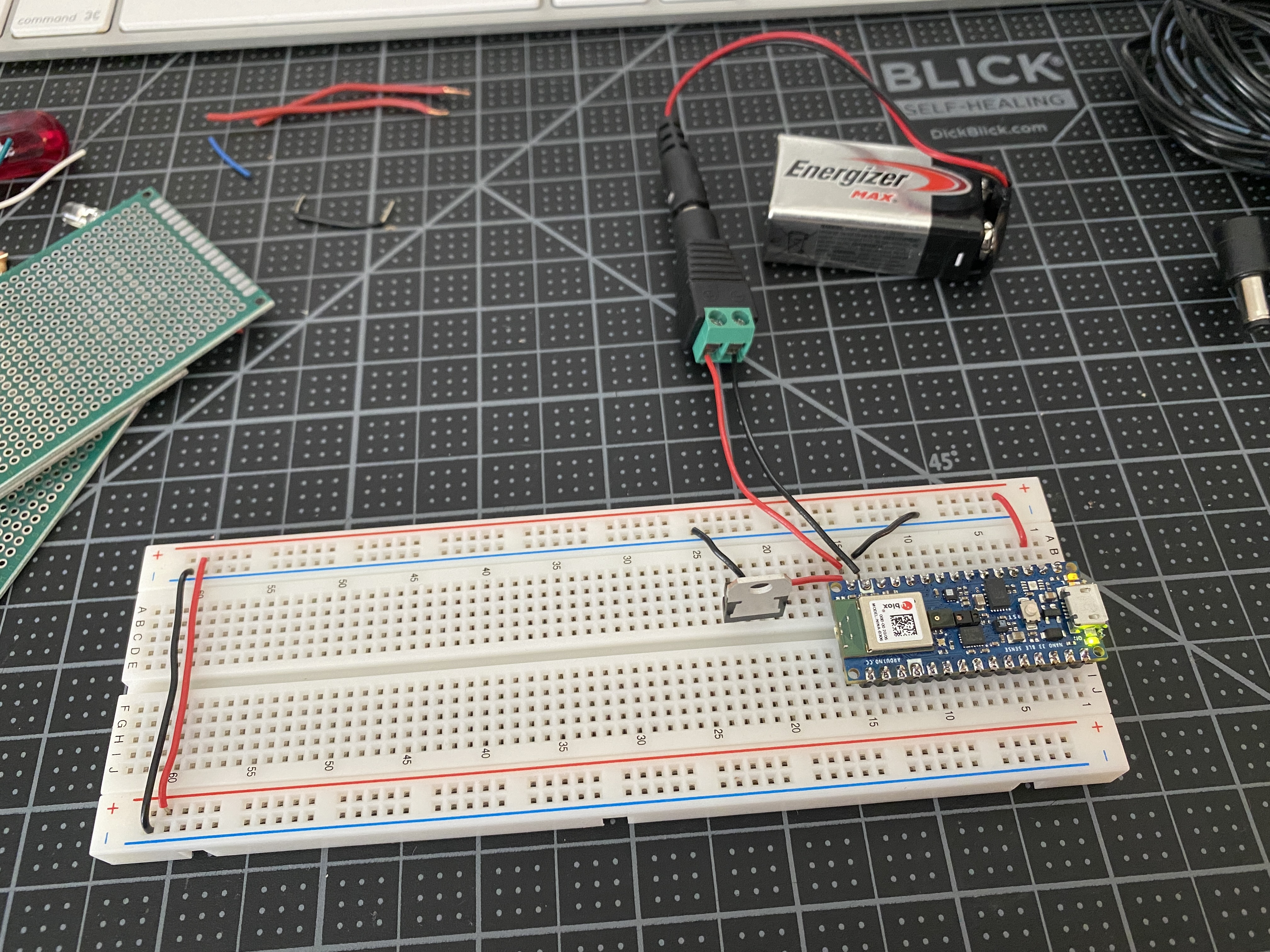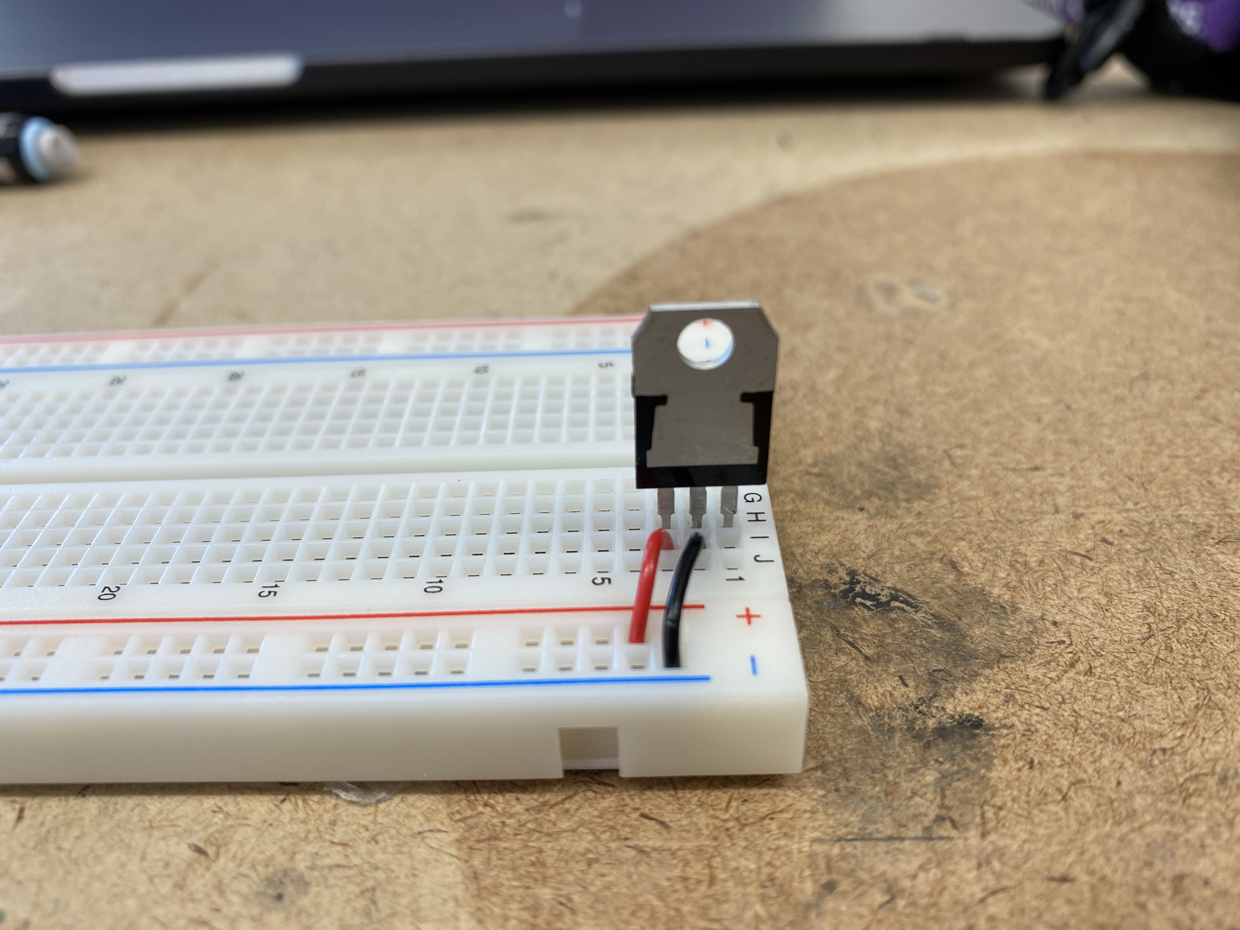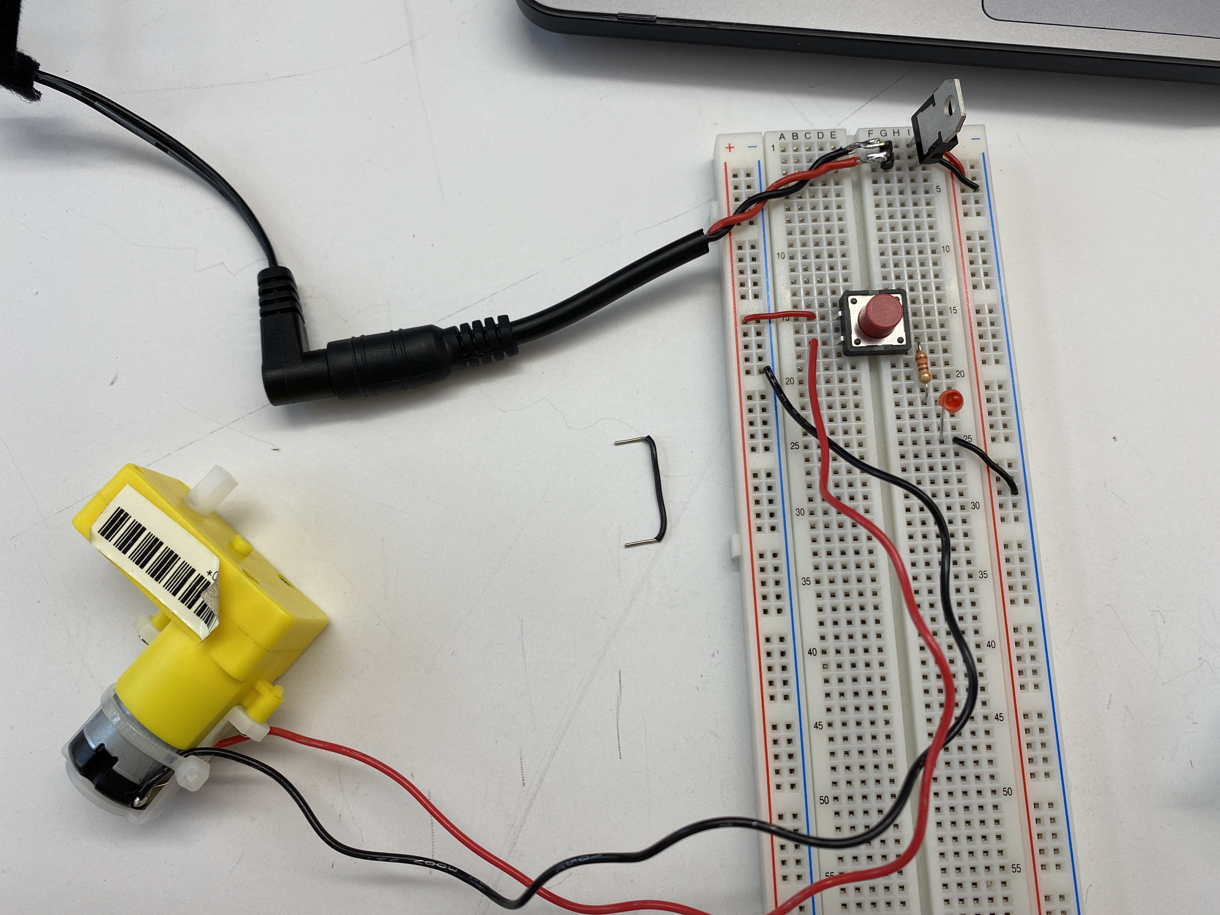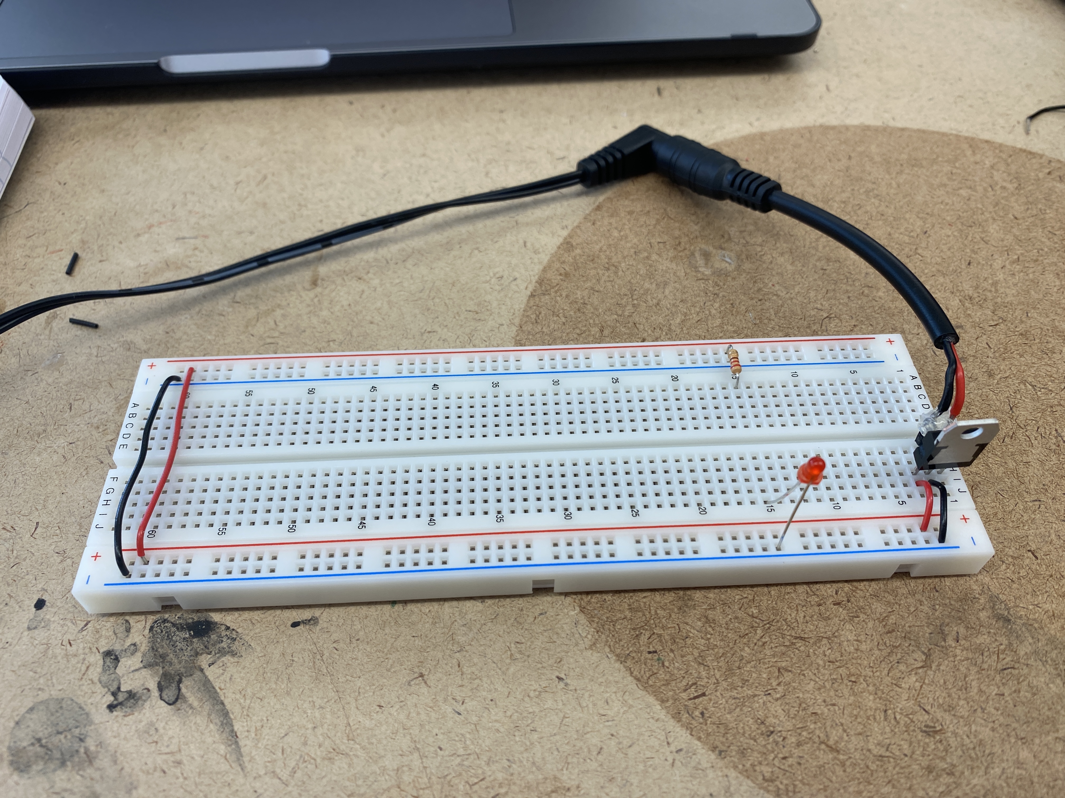In order to power the breadboard via the microcontroller without a USB, I connected a DC power jack