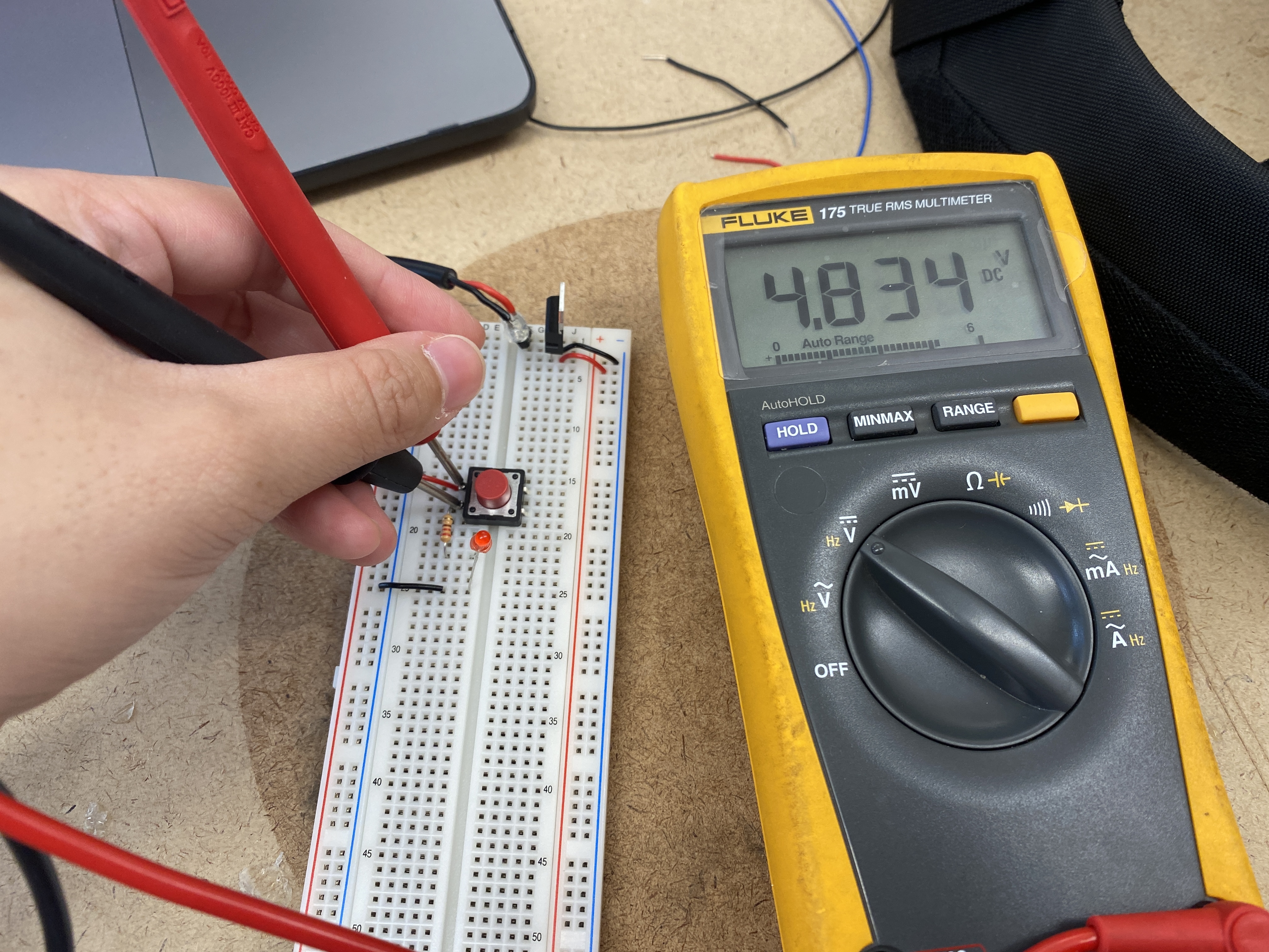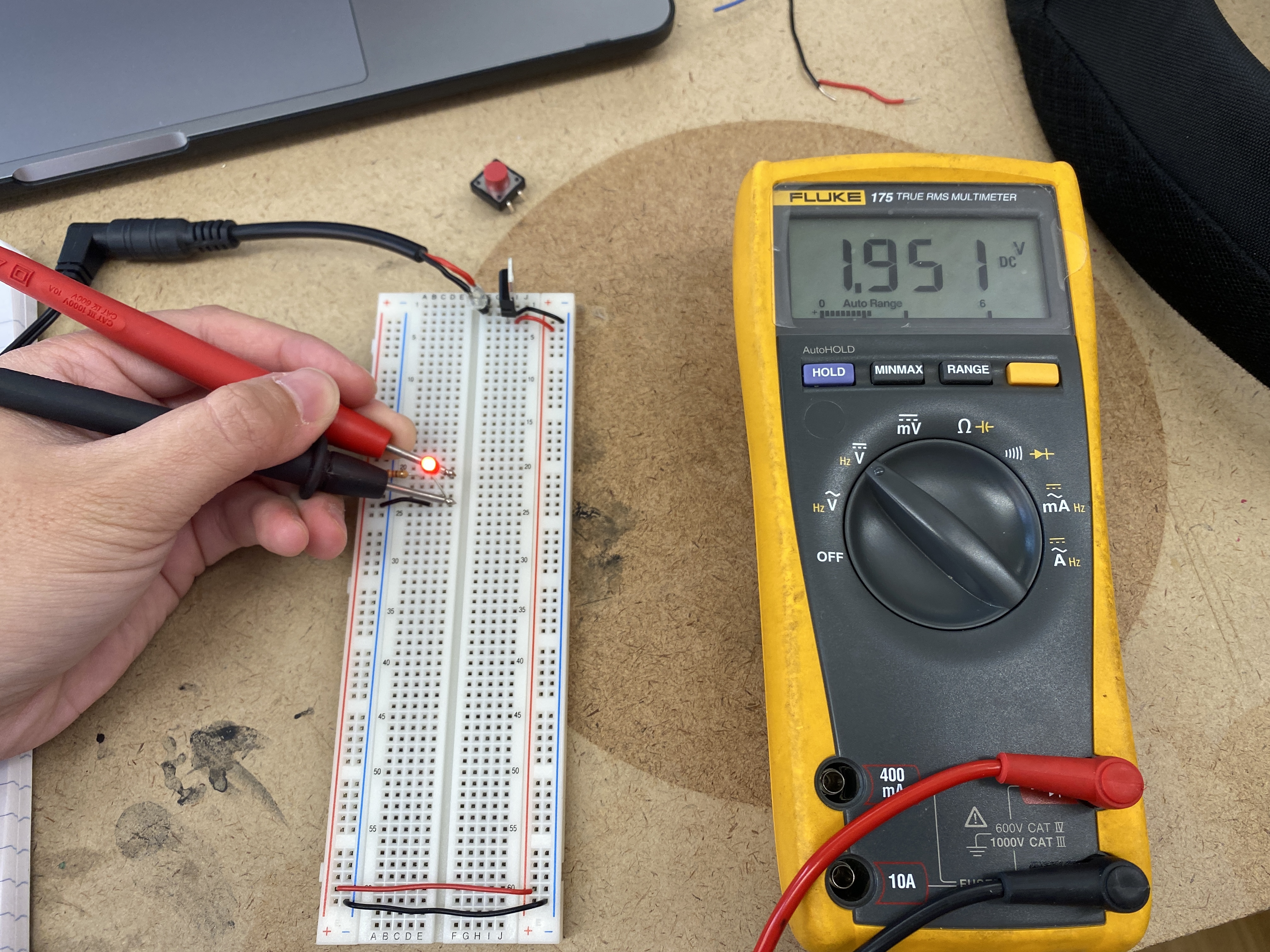 Measuring the voltage across the pushbutton