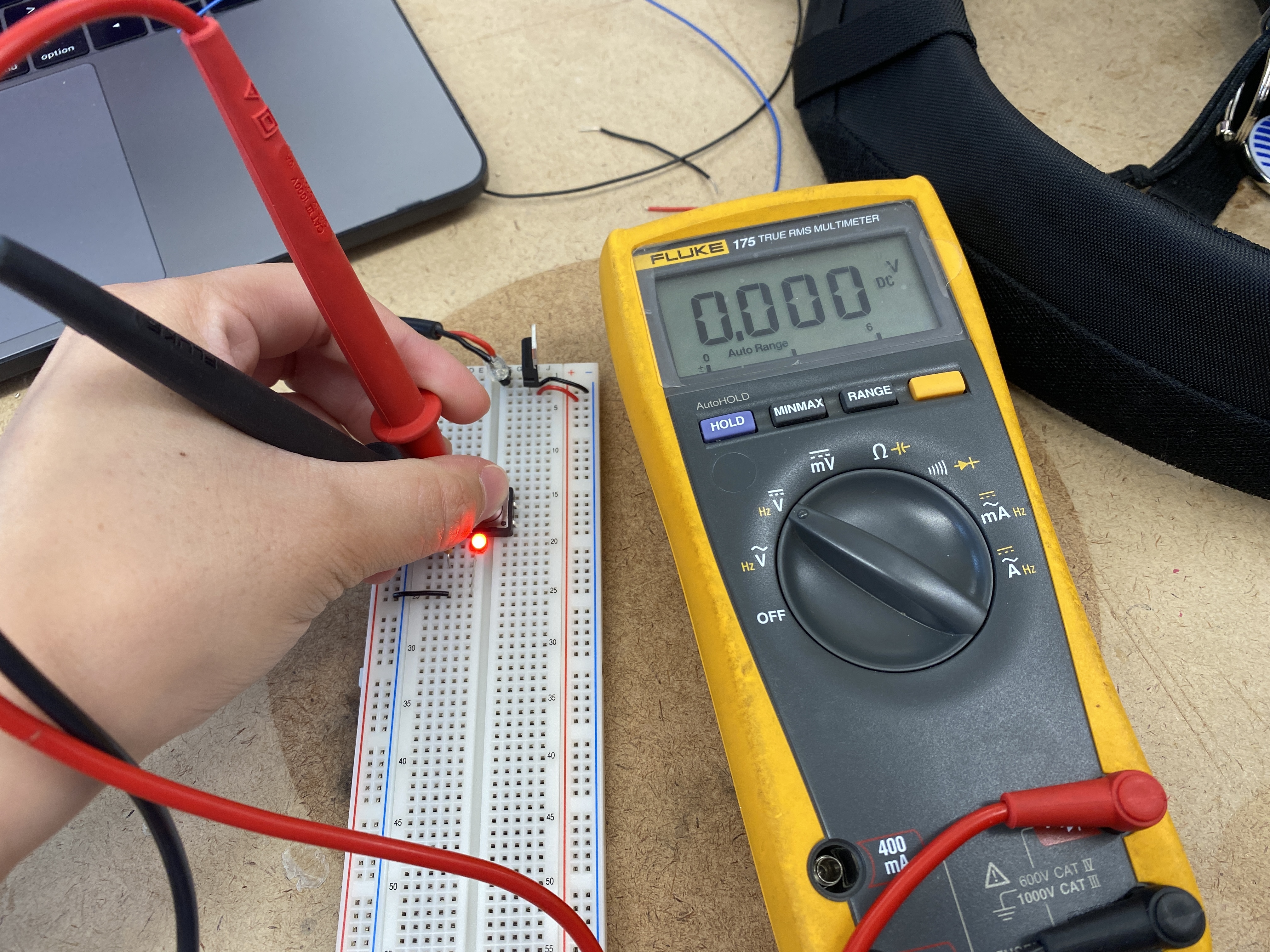 Measuring the voltage drop across the LED.