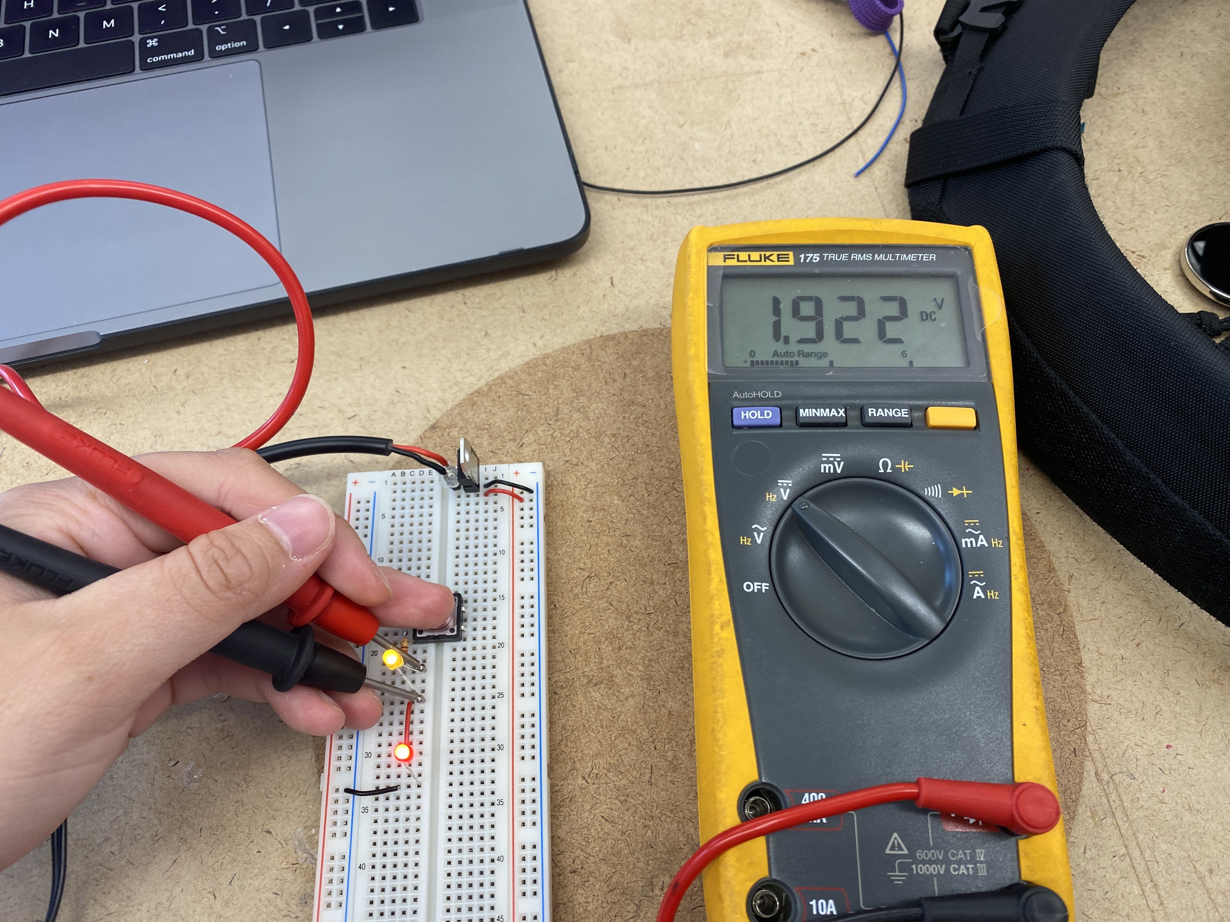 On the left, the multimeter reads around 5V because the voltage is stopping here, and not going